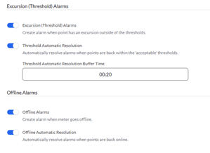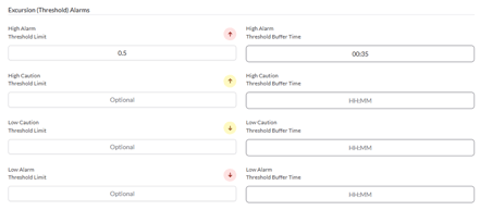 - Toggle on the “Excursion (Threshold) Alarms” to allow you to set the values below