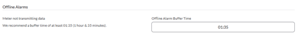 - Sonicu’s recommendation for the “Offline Alarm Buffer Time” is 1 hour and 35 minutes, but can be adjusted if needed.